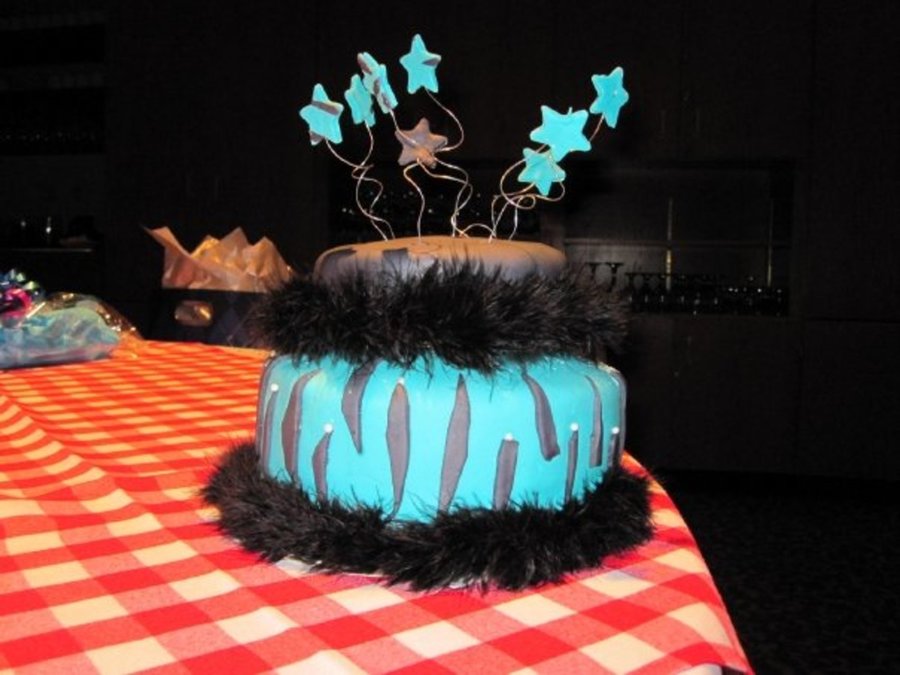 Cake i made for my sister's birthday. Had a cake disaster before this so didnt have much time to make this cake. Threw it together in 2 hours and wrapped a mini black boa around each tier! But of course my lil sis still loved it!!!