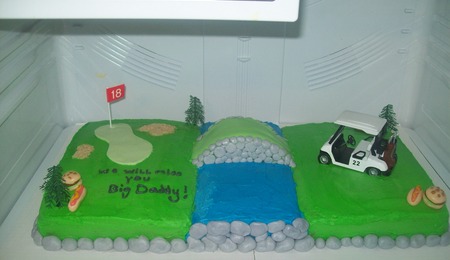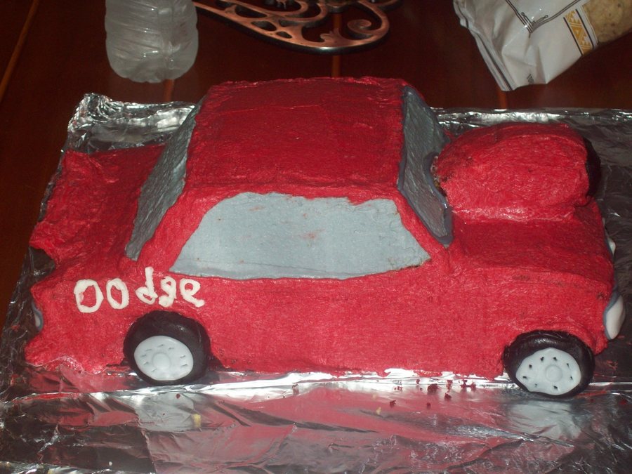 I made this cake for my fathernlaw for his Bday. He used to race one of these cars and he just loved the cake, he's was also red. The cake was red velvet his favorite and buttercream icing. I hand carved it all out. TFL