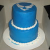 really upset about the blue getting on the board.. was a bit sloppy today =/ but, maybe it wont matter to them as much as it does me.. chocolate cake, BC... fondant details customer wanted blue with white wings..