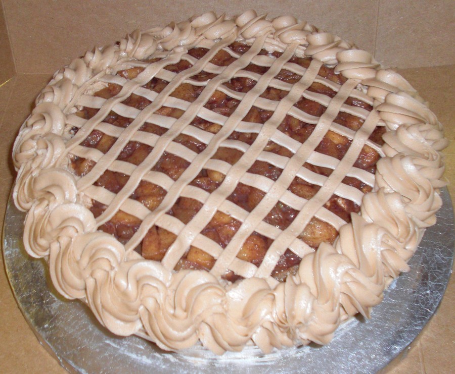 Made a yellow butter cake and covered top with cooked sugar and cinnamon apples and iced in BC. Made it for a early holiday dinner. Thanks so much for looking!