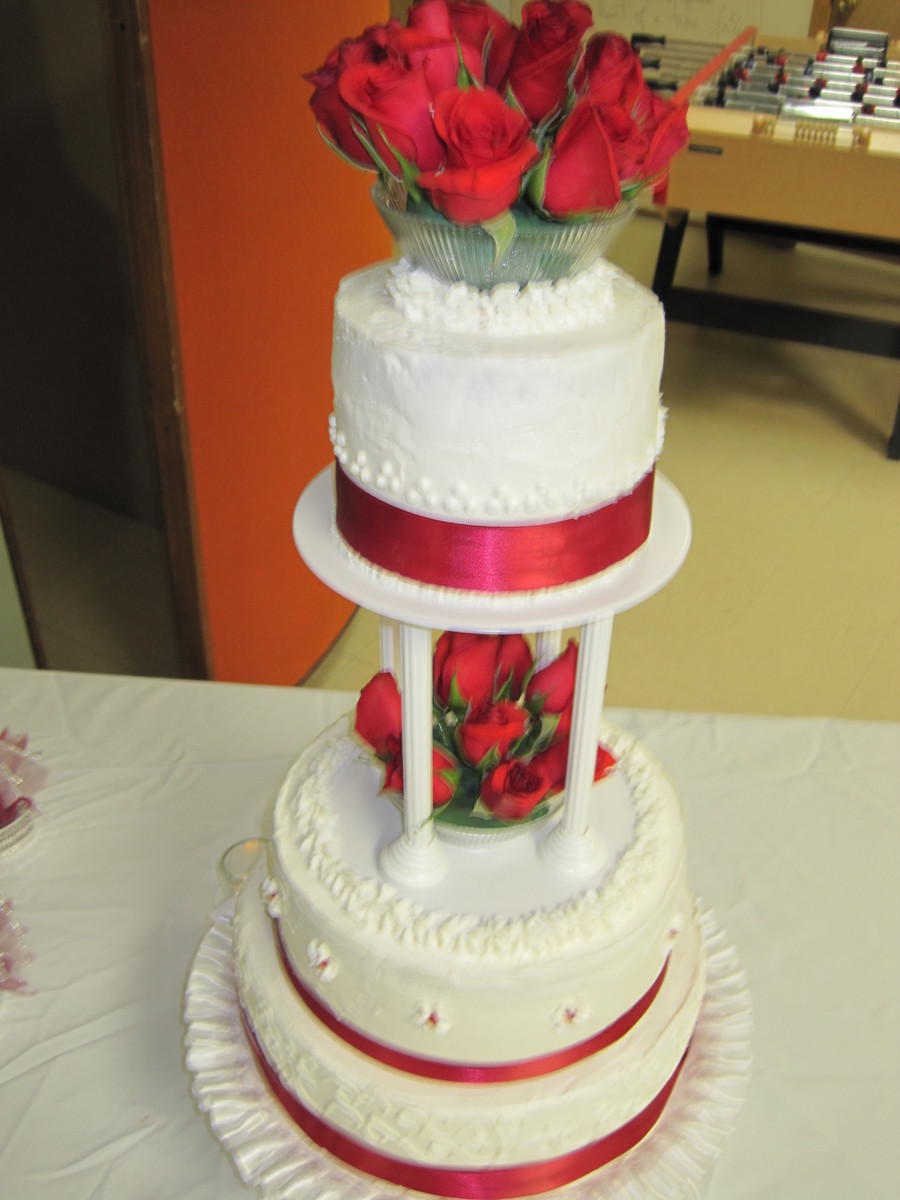 red and white weding cake for co-worker