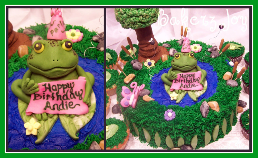 This cake is half chocolate brownie and half sugar cookie vanilla with vanilla buttercream. Everything is edible and made by hand with MMF. My first frog person..I'm pretty proud!!