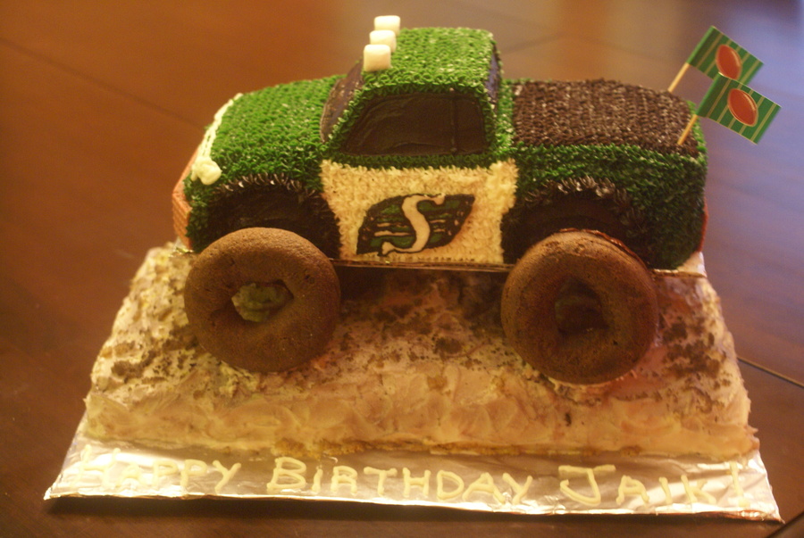 Saskatchewan Roughrider Truck cake for my friends sons 2nd Birthday.