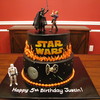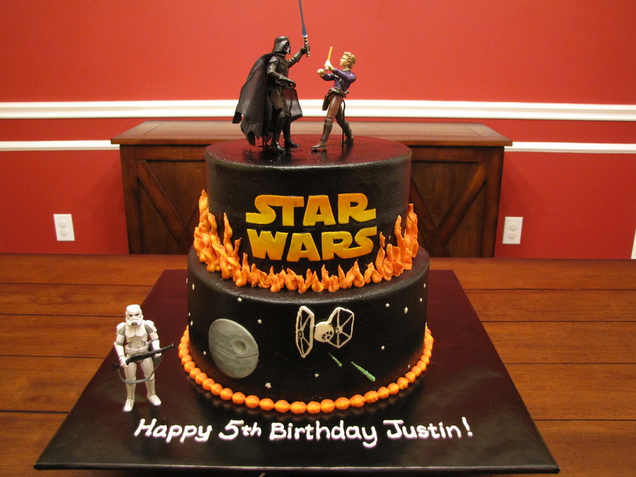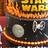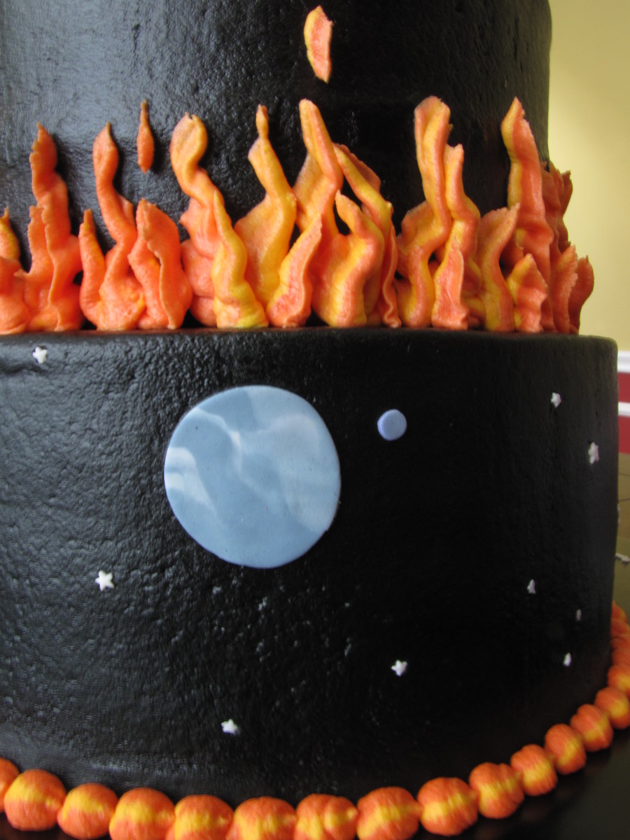 Trying out an airbrush for the first time- colored chocolate buttercream black... fun but boy did I learn a lot. All buttercream with fondant letters (airbrushed) and death star. Tie fighter is a FBCT.