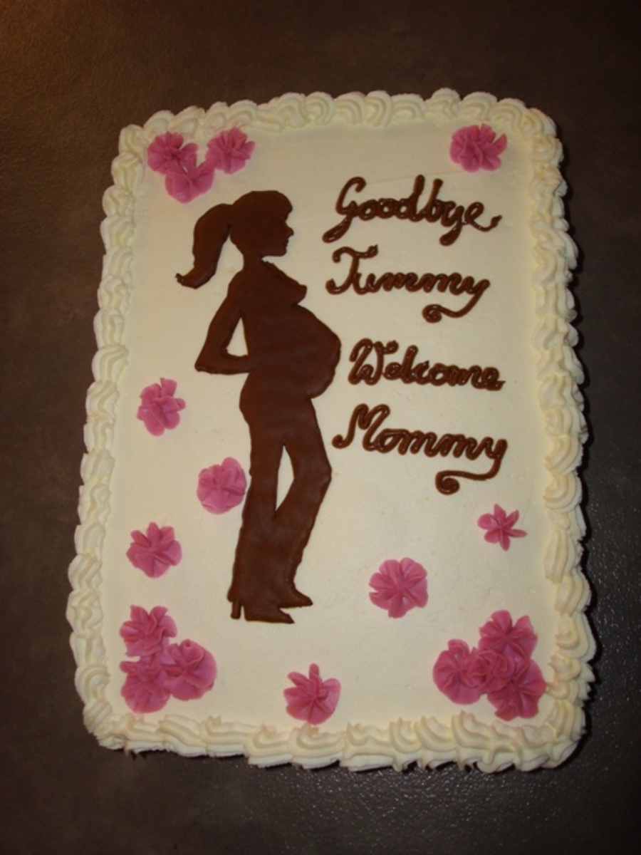 lemon cake with whipped cream and fruit layers; iced with whipped cream; color flow pregnant girl's silhouette