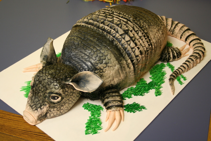 My first carved armadillo. Made it for a going away party for a couple moving to Texas. All edible. Hand-painted fondant.