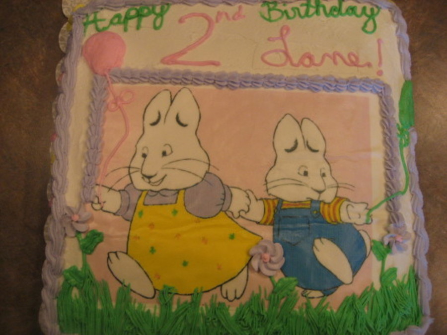 I used an edible image for Max and Ruby. Frosted with buttercream and flowers made out of royal icing.