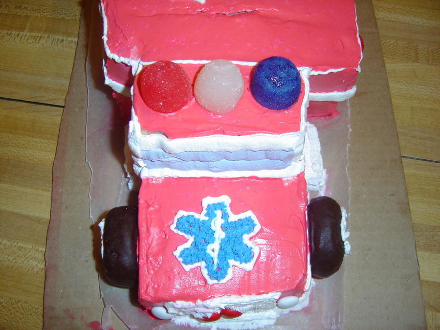 Made with chocolate donuts for wheels and butter creme whipped frosting, colored gum drops