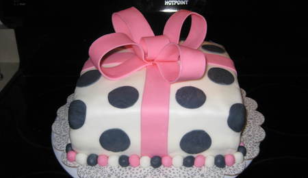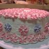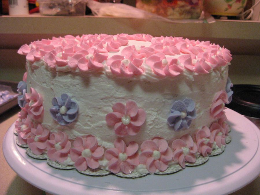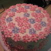 I made this cake for a Tickled Pink jewelry party. Buttercream with royal icing drop flowers.