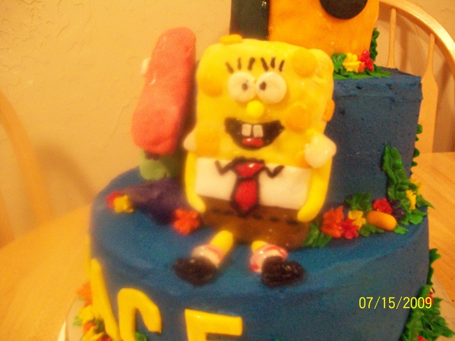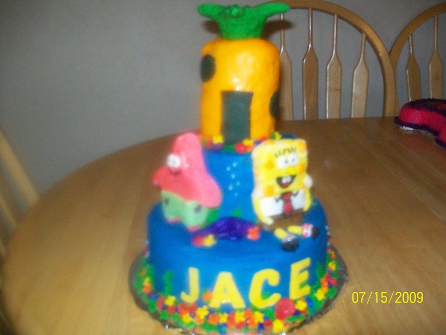Sponge Bob, Patrick and the pineapple are all made from rice treats and fondant. Made this for a friends sons 2nd bithday. It was a great hit.