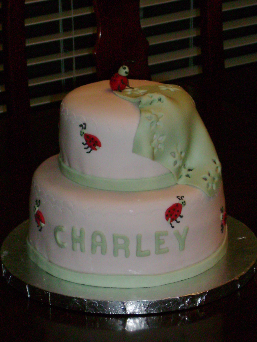 This was a sourcream white cake with fondant icing and fondant/royal icing lady bugs. Thanks for looking.