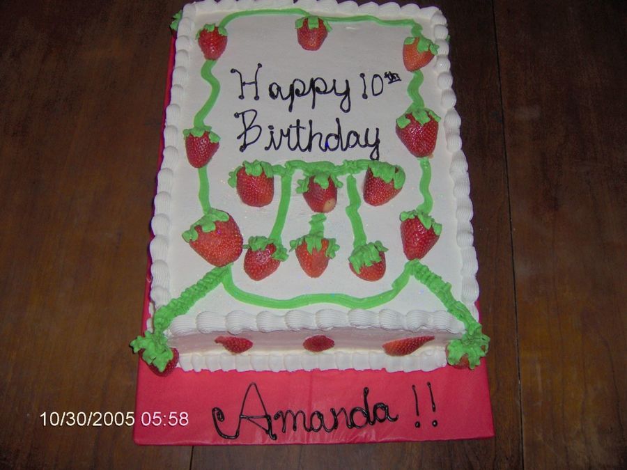 This cake was suppose to be a girly girl cake and not due until Wednesday. But my sister decided she wanted to do the cake thing today and that Amanda told her take this (pint of Strawberries) to Tia Christy and tell her to put them on the cake.. ... aahhhgg.. So here is the last minute cake.. Chocolate cake, whipped cream icing and fresh strawberries..