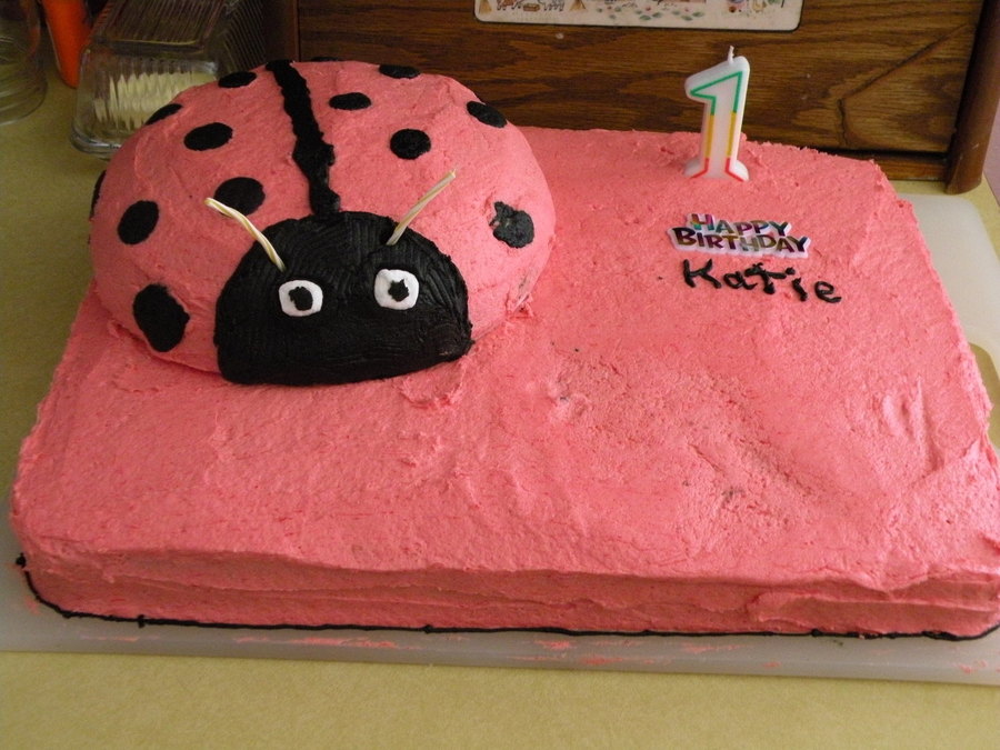 white chocolate cake with raspberry buttercream frosting. Made for my neices first birthday. Had a few mishaps but I was pretty happy with the ladybug.