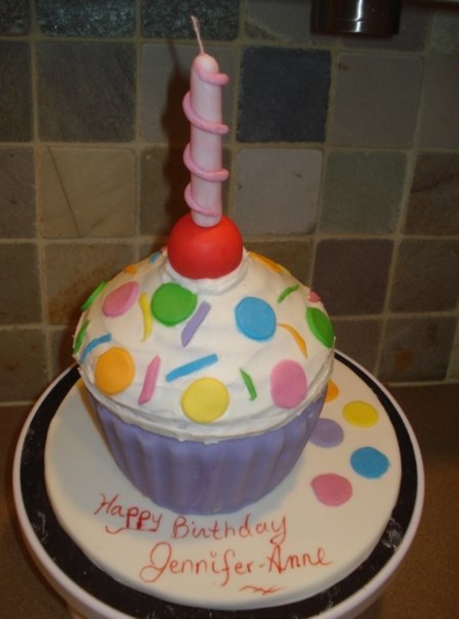 This was a last minute cake for a birthday dinner. Decorated in about an hour. Vanilla cake with Buttercream and fondant covered. Candle made from fondant and gumpaste wrapped around dowel with a mini candle inside so it was a working candle!