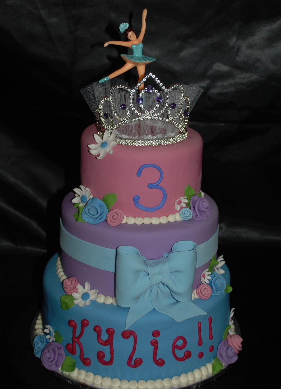 This is a 10", 8" and 6" white with BC, covered in MMF, all decorations are MMF except the tiara and ballerina. I love the colors of this cake! I have made this little girls birthday cake every year and each one is getting bigger and bigger!! LOL!