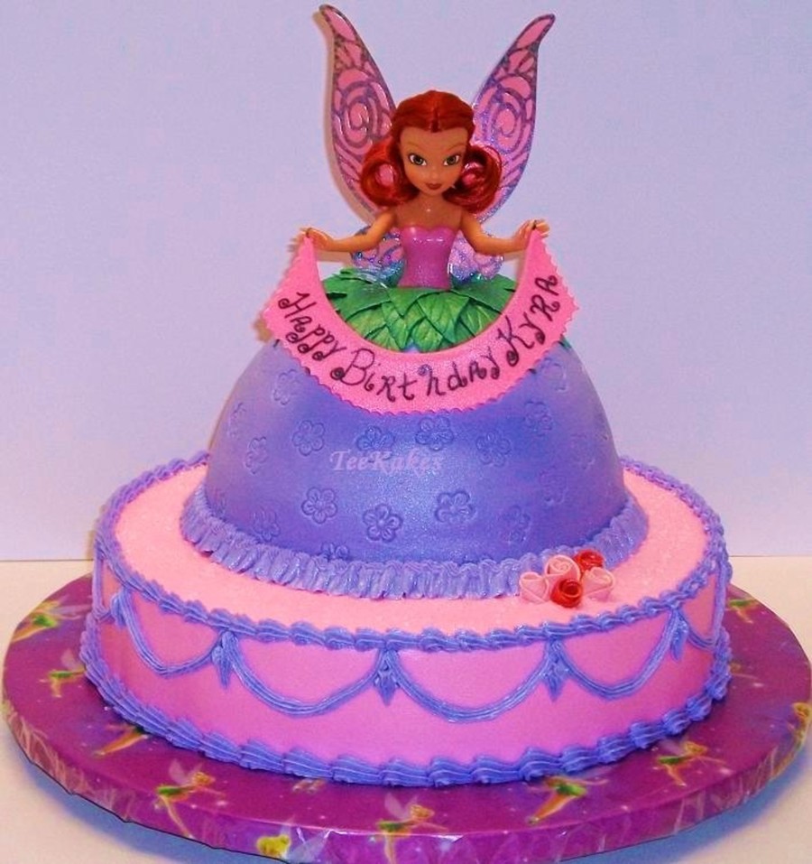Wonder Mold on a 12" base for a little girl's bday. She loves Tink and princess and HAD to have both! :) She also HAD to have all pink and purple so this is what I came up with for her. She was so excited! All buttercream except HB banner and leaves. TFL! :)