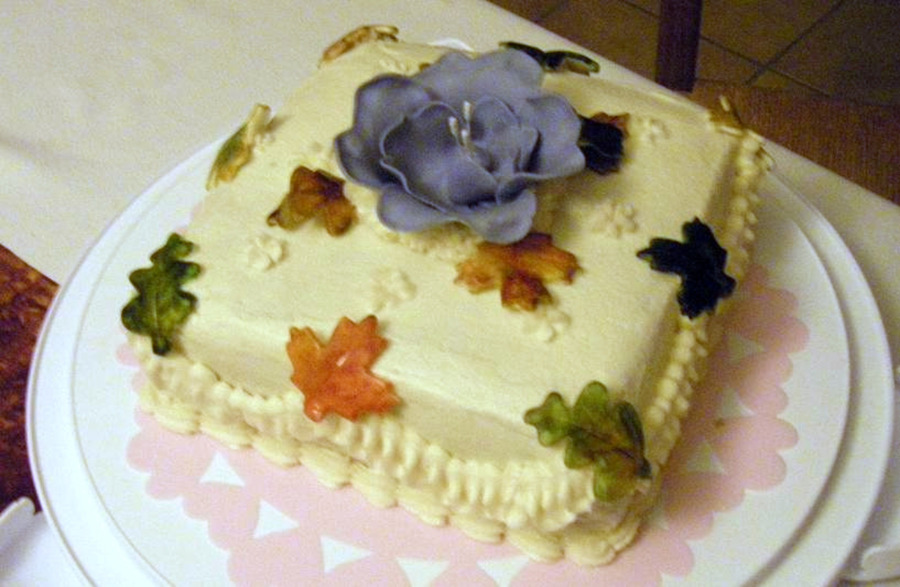 Aptly named due to the fact I have a very out of place purple 'fantasy flower' made in the Wilton class that I stuck on top of my cake I took to work for our Thanksgiving potluck. People ate around the flower sadly...so I'm stuck with it again. Guess I have to throw it away.