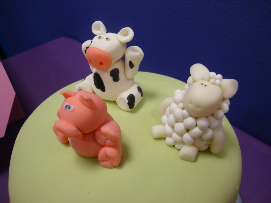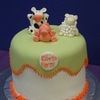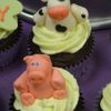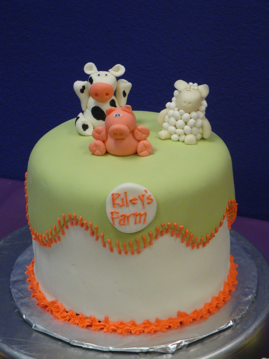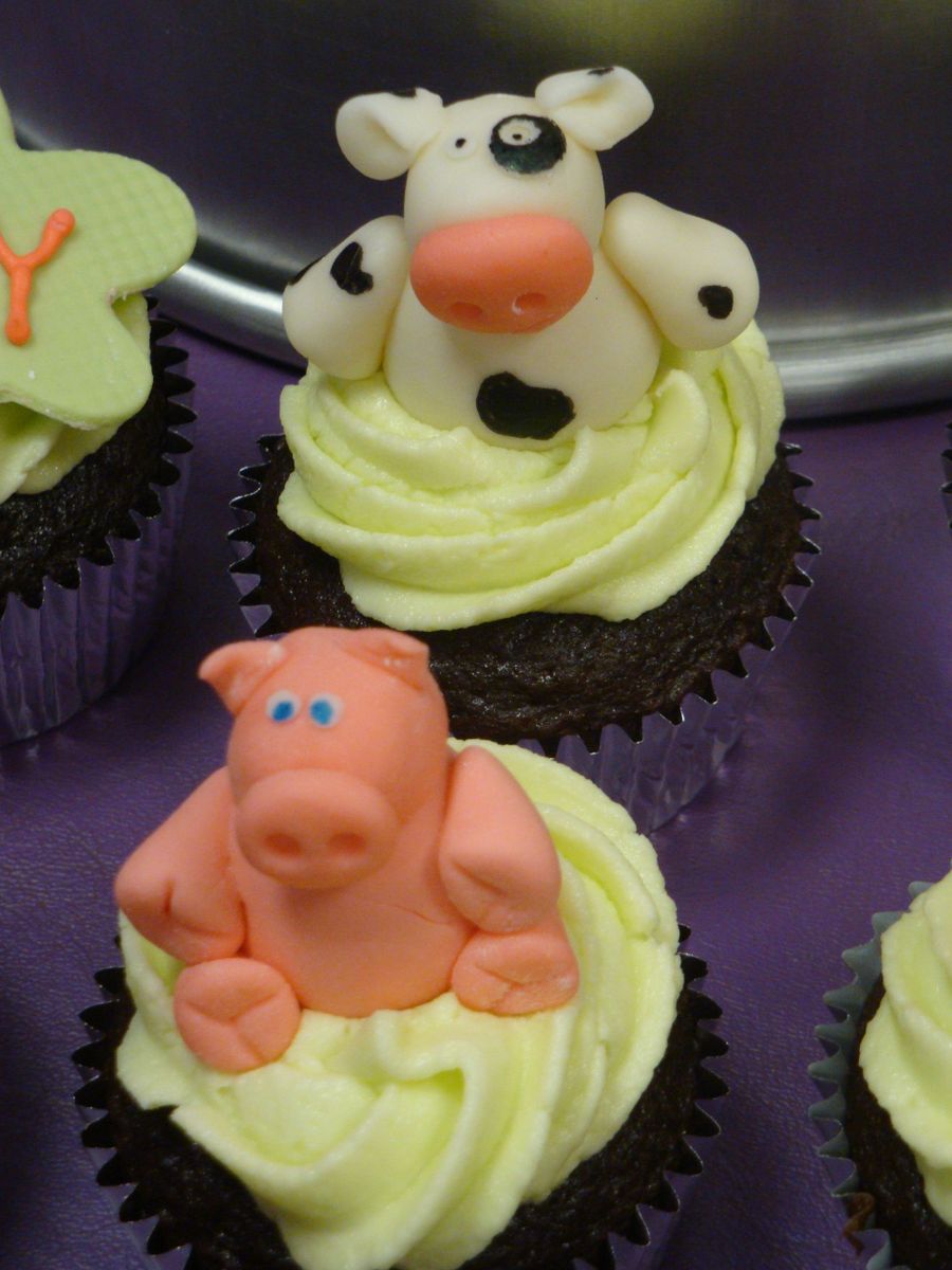 6", 3-layer cinnamon chocolate fudge cake & cupcakes w/ vanilla buttercream. Covered/decorated w/ MMF. Cake and cupcake toppers also MMF