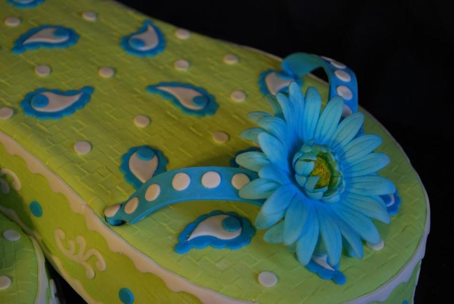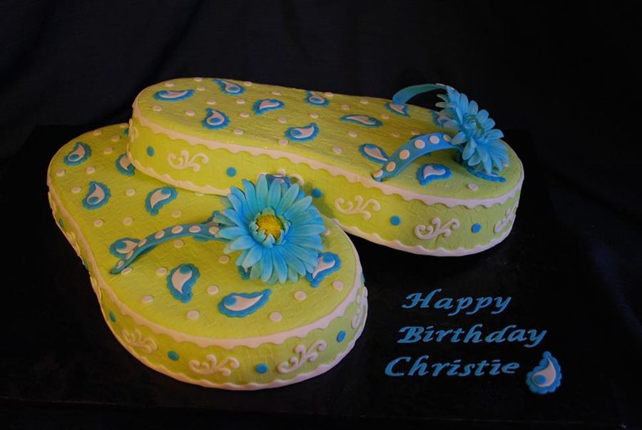 One would have thought I was running a sale on these this past summer. I think I did 4 pair of them! Pretty basic, each cut out of an 11X7" cake, covered in fondant and then detailed.