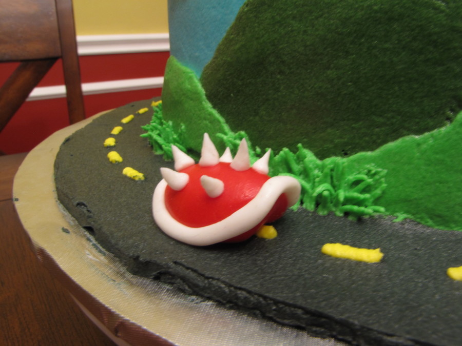 This cake is both Mario Kart and Super Mario Bro themed, made for a little Wii fanatic. Thanks to all the other CCers for the mushroom idea. :)