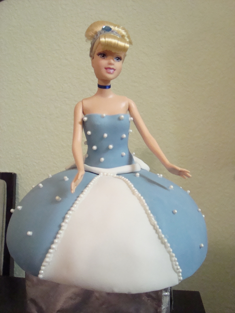 Chocolate dome cake with Cinderella Barbie. I had to cut a hole in styrofoam for her legs so I didn't have to cut them off. LOL