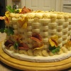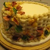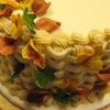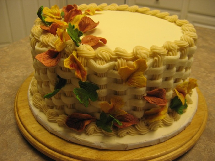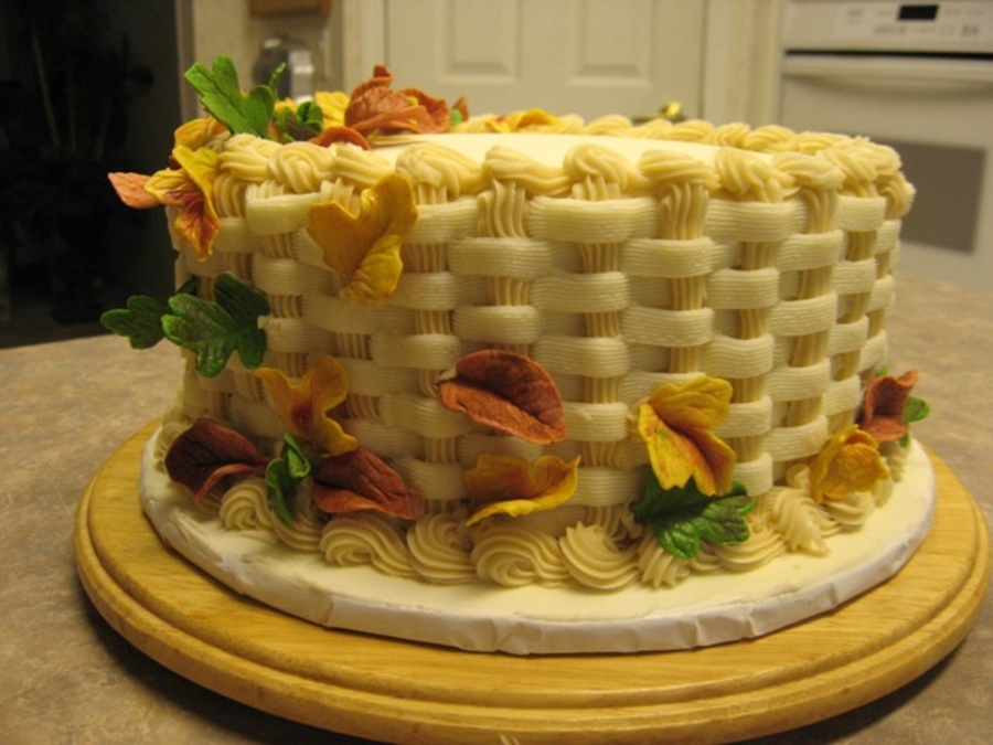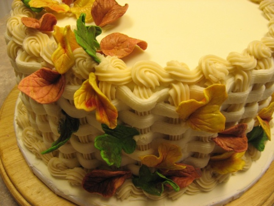 red velvet cake with cream cheese filling and cream cheese icing basket weave gum paste leaves. TFL