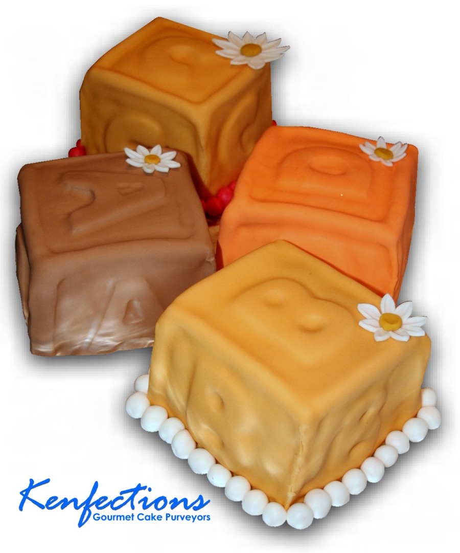 Size may be deceiving but this is actually two sheet cakes layered and cut, topped with fondant. Underneath is Red Velvet cake(cust request) topped with our signature butter cream icing.