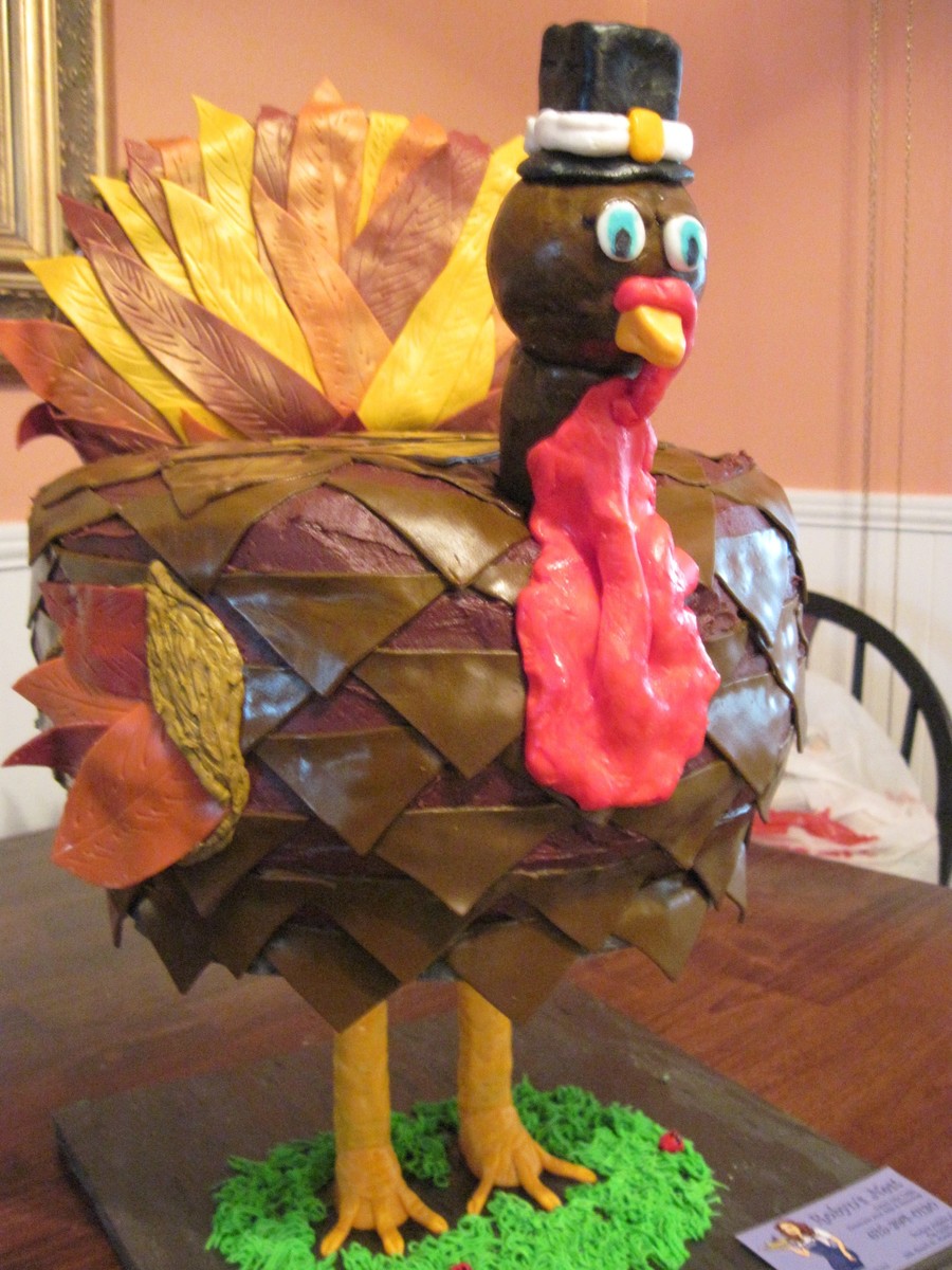 Wanted Turkey to stand on legs. Took some thought but headed to Lowes, bought supplies and made it work. Was lots of fun. 4 12inch rounds w/buttercream and fondant decorations.