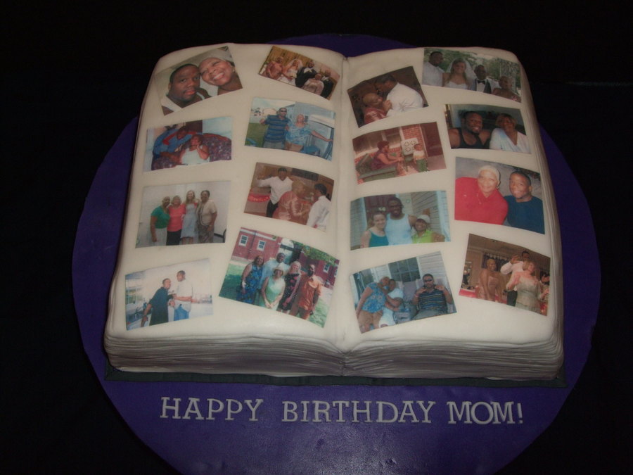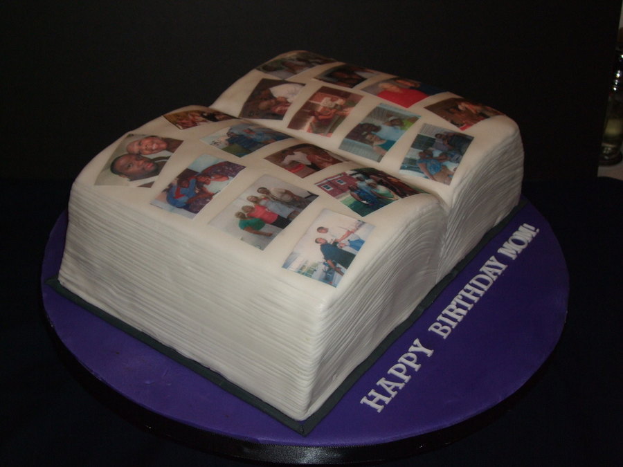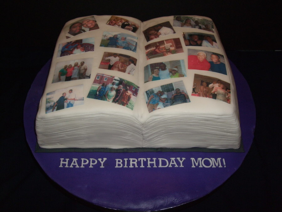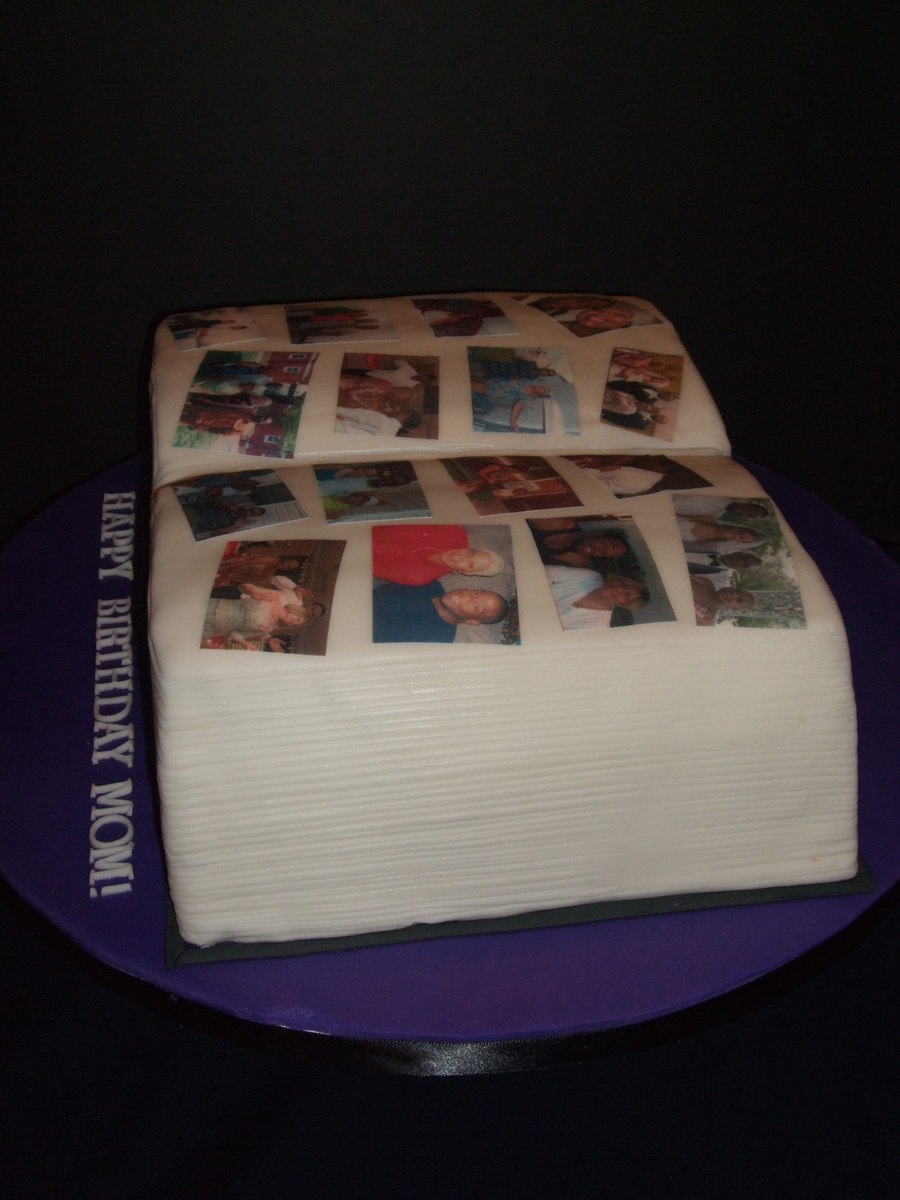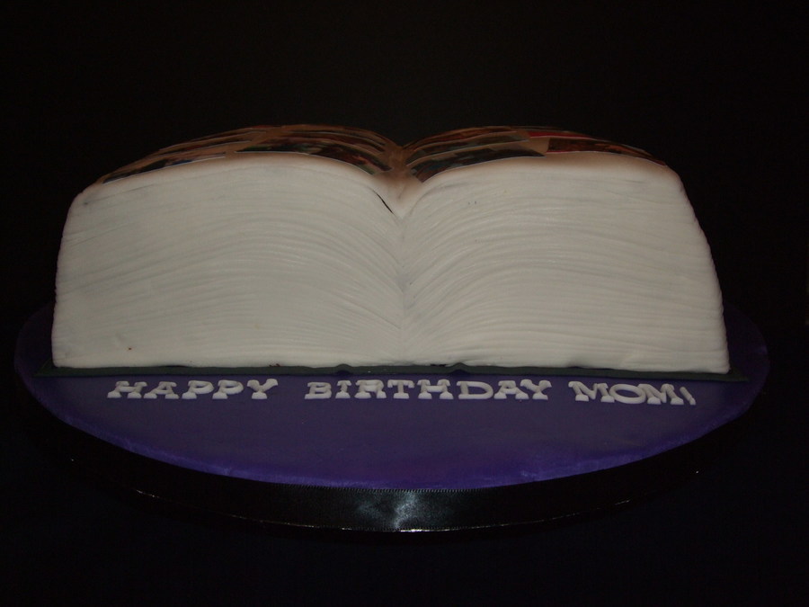 This cake was made for my mother-in-law's birthday. We wanted something with edible images for her so this is what I came up with. It was a chocolate pound cake with irish cream buttercream filling. I carved the cake to the shape of a book and put the page indentations with a ruler & cardstock. TFL!
