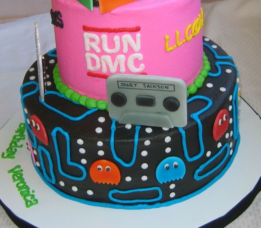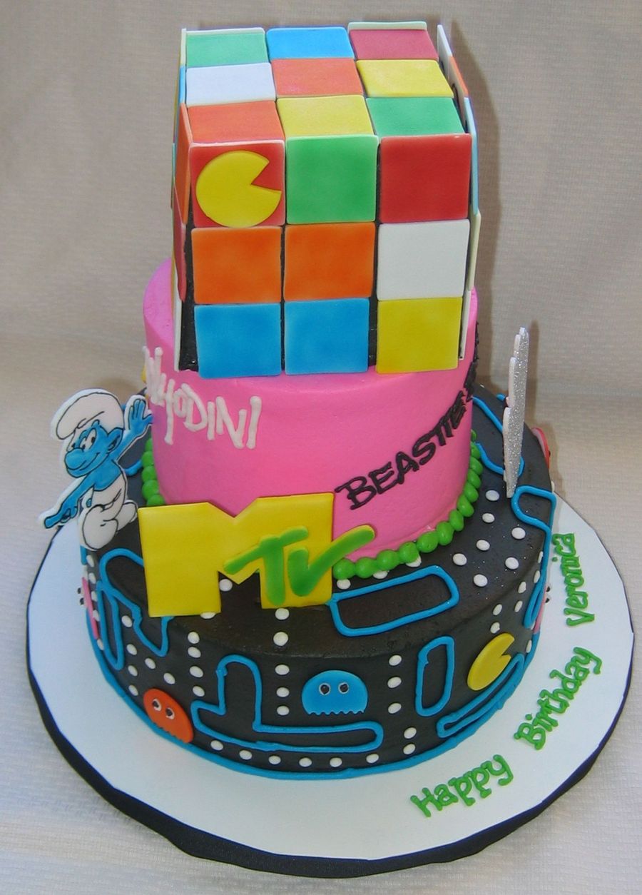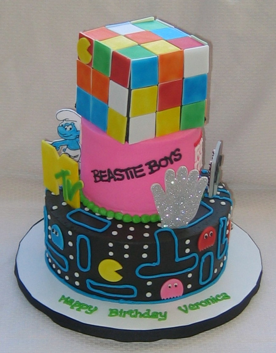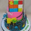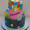 Cakes were iced in buttercream with fondant accents. Had a lot of fun with this one, even though the squares on the cube are a bit wonky.