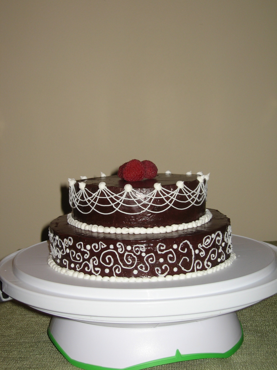 This a raspberry and chocolate cake with chocolate ganache, the decorations are piped on (my first try so forgive the messiness). I made this for a friend's birthday and everyone really loved the taste!