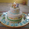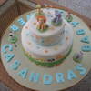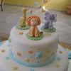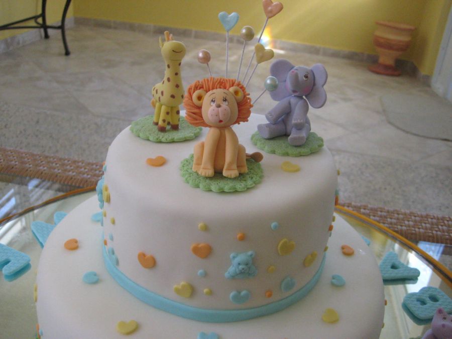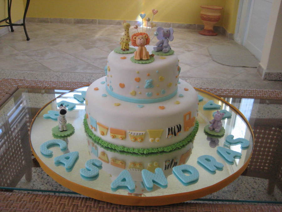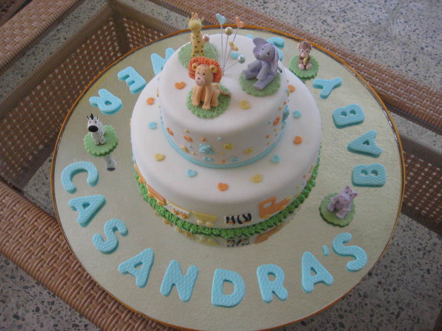 I decorated the cakes using the baby shower invitation circus train theme. The train and accents were made using fondant and gumpaste. The animals are porcelain figures.