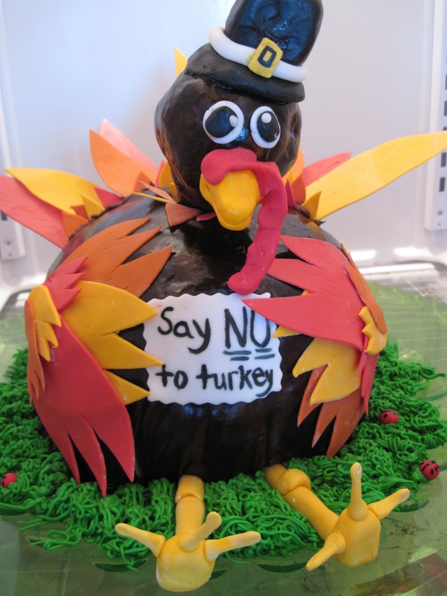 Red Velvet Cake in ball pan w/cream cheese frosting covered in fondant. Recently started making cakes and my 4 yr old nephew wanted a fun Thanksgiving cake... Thanks to all CC users for idea!