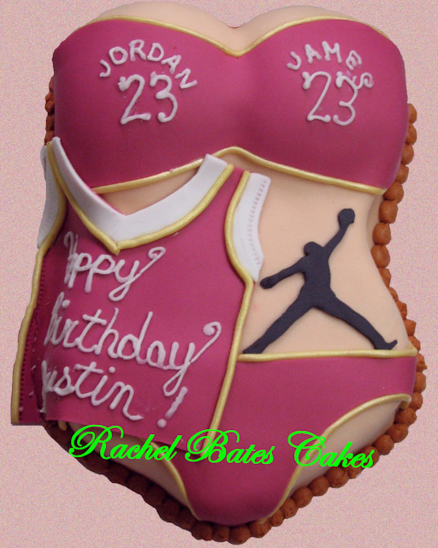Chocolate cake. This was actully cut out of a quarter cheet cake! I usually don't make cakes that small, but it was for a very good friend who sends me lots of business. Her fiance is a big Jordan/James fan.
