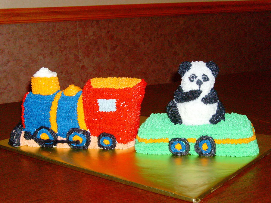 I used the Wilton 3D train pan, a loaf pan, and the small 3D teddy bear pan.