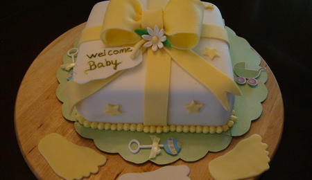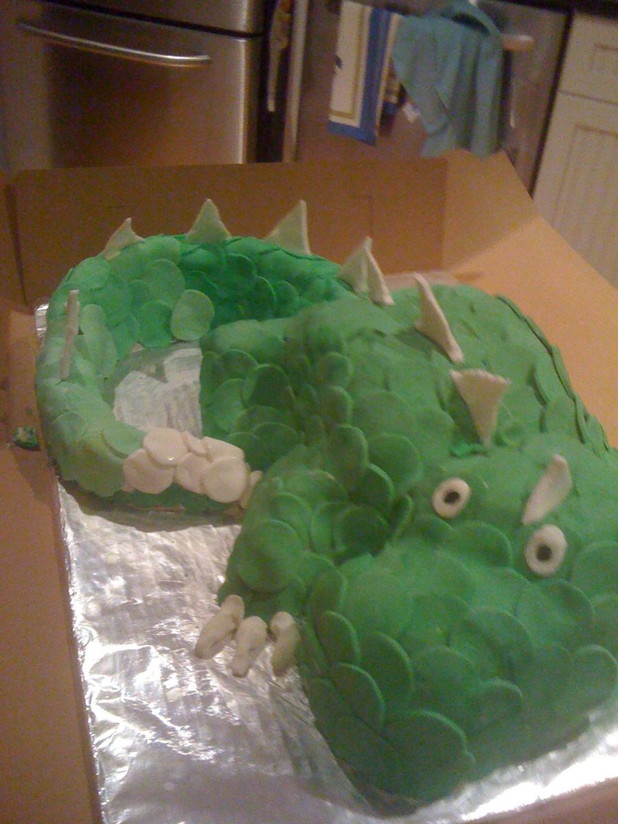 Chocolate and vanilla cake. Scales are made out of fondant.