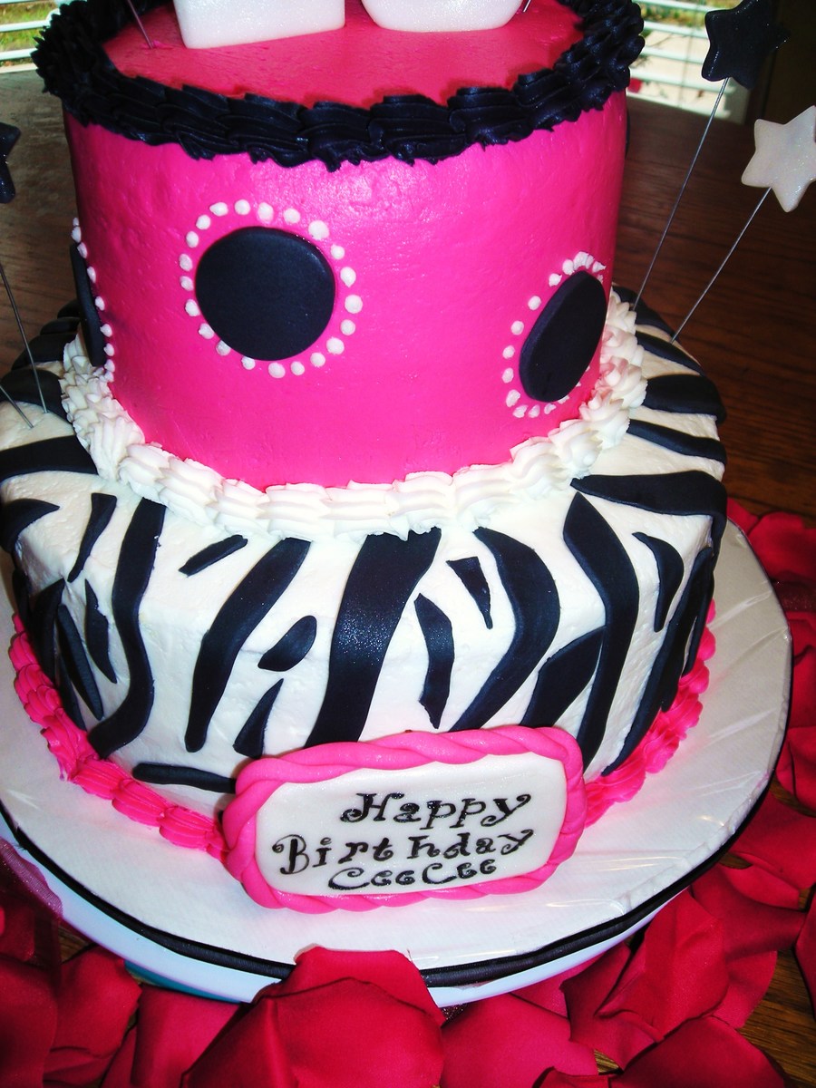 Kids Birthday Cake Pink And Black Zebra Cake