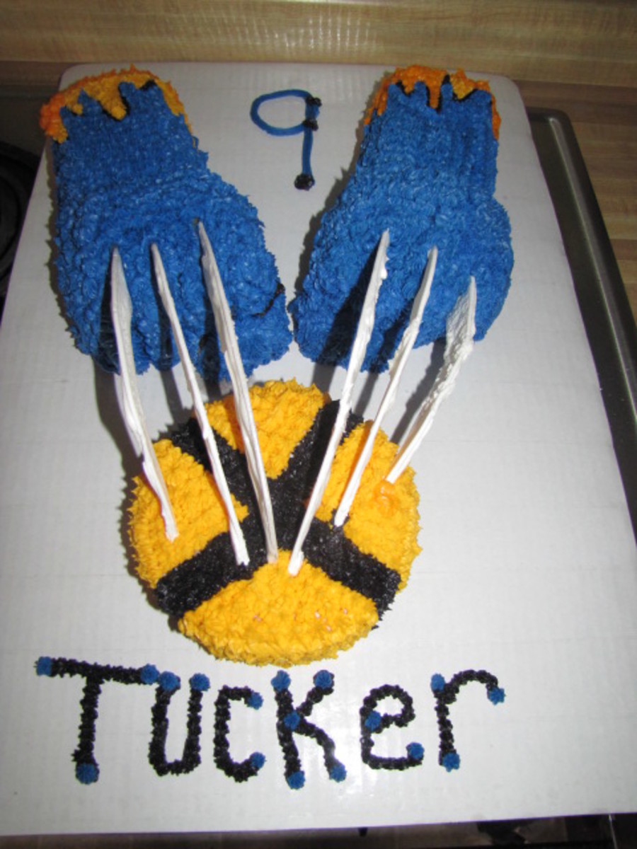 The hands were carved from a split 9" square. Cake is all butter cream, and Blades were made from Royal Icing. This was so fun to make!!!!!