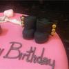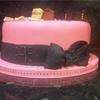 made for twin girls who wanted various specific items on their cake - and it had to be pink!