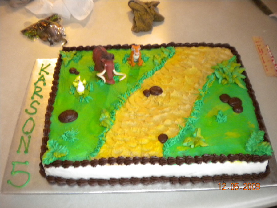 This is the 4th cake I have made and it was made for my nephew's 5th b-day. He is a huge ice age fan.