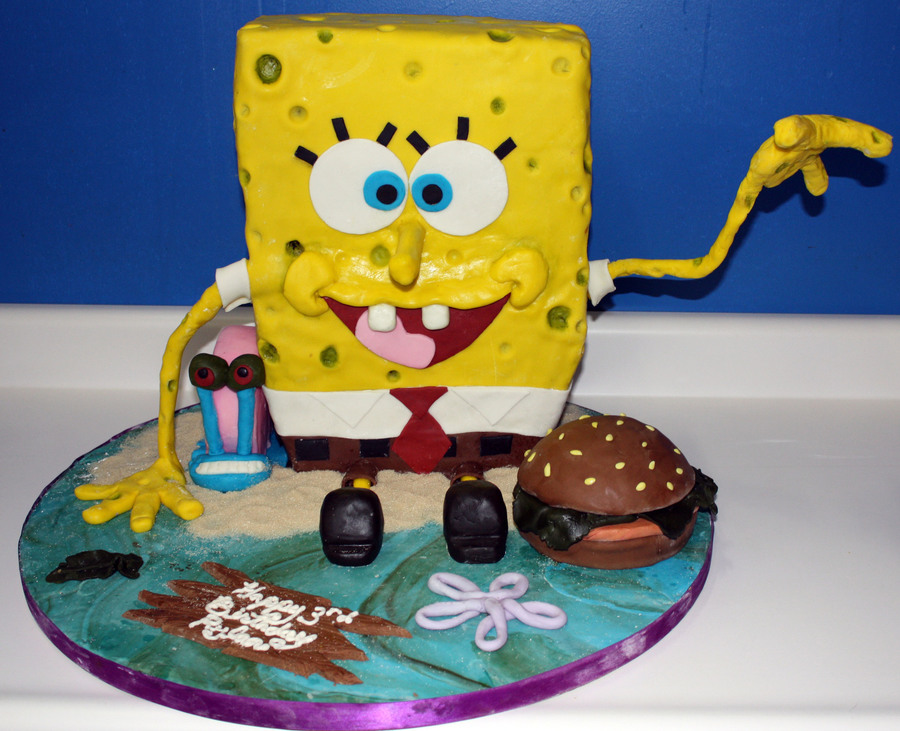 For a three year old birthday. HUGE cake, around 150 servings in sponge bob alone. MMF covering and accents. This was fun! :)