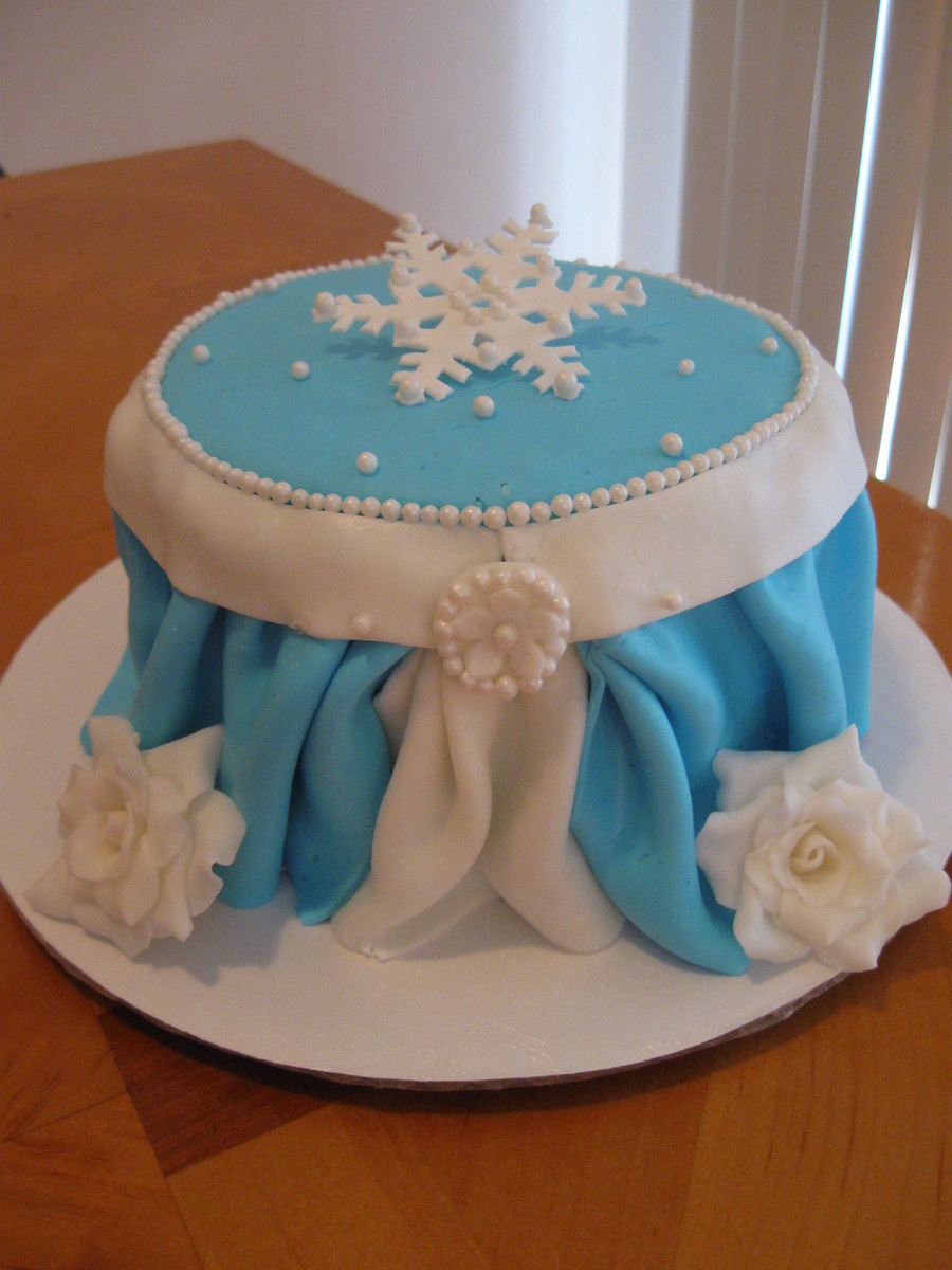 Made this cake for a Christmas open house. It is covered in MMF with gumpaste roses and a gumpaste snowflake.