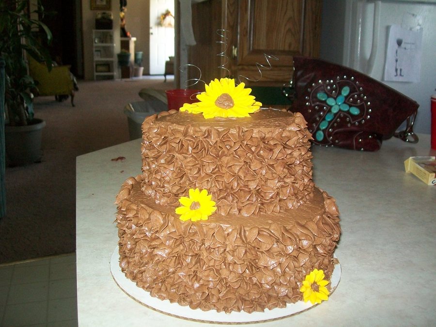 All chocolate cake and icing ... Sunflowers are made from fondant! Very simple cake, but i thought it was pretty!!