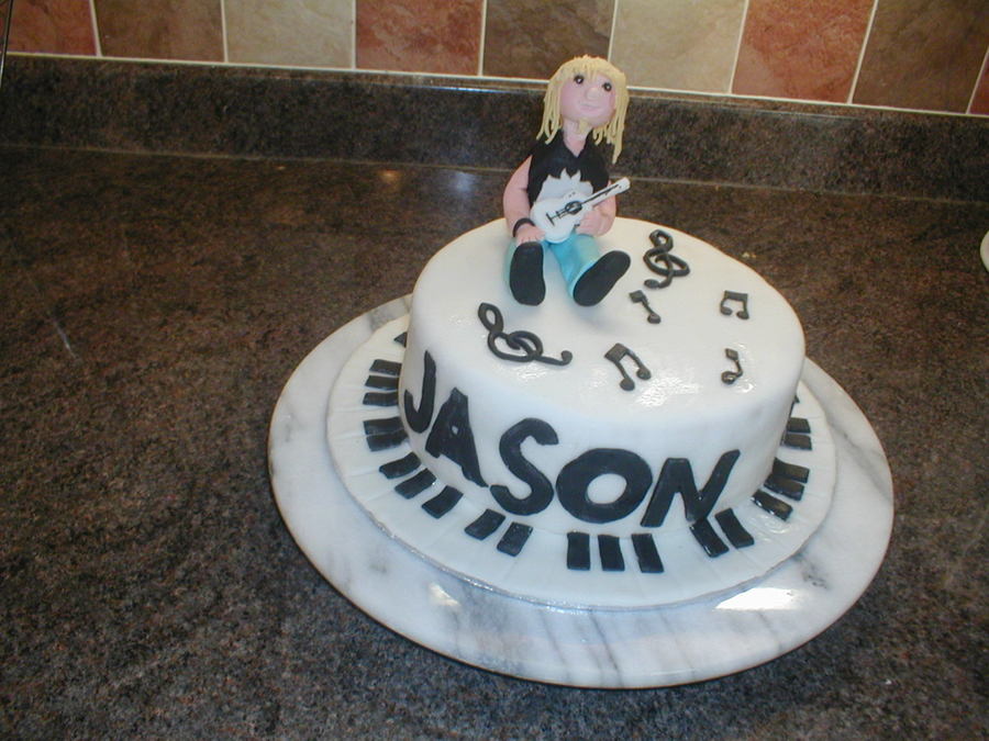 cake for my grandaughters boyfriend, using a figure tutorial from lorraine