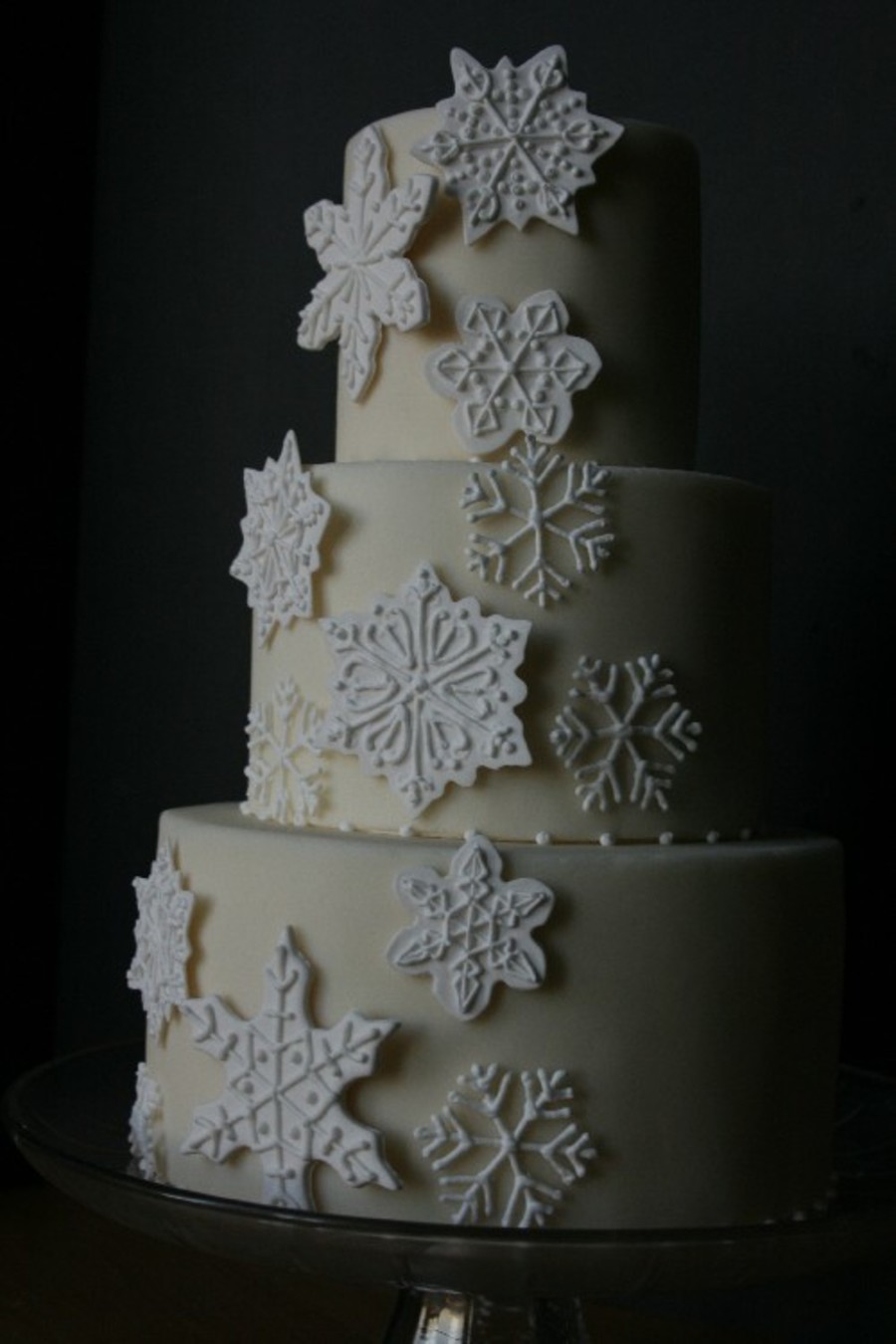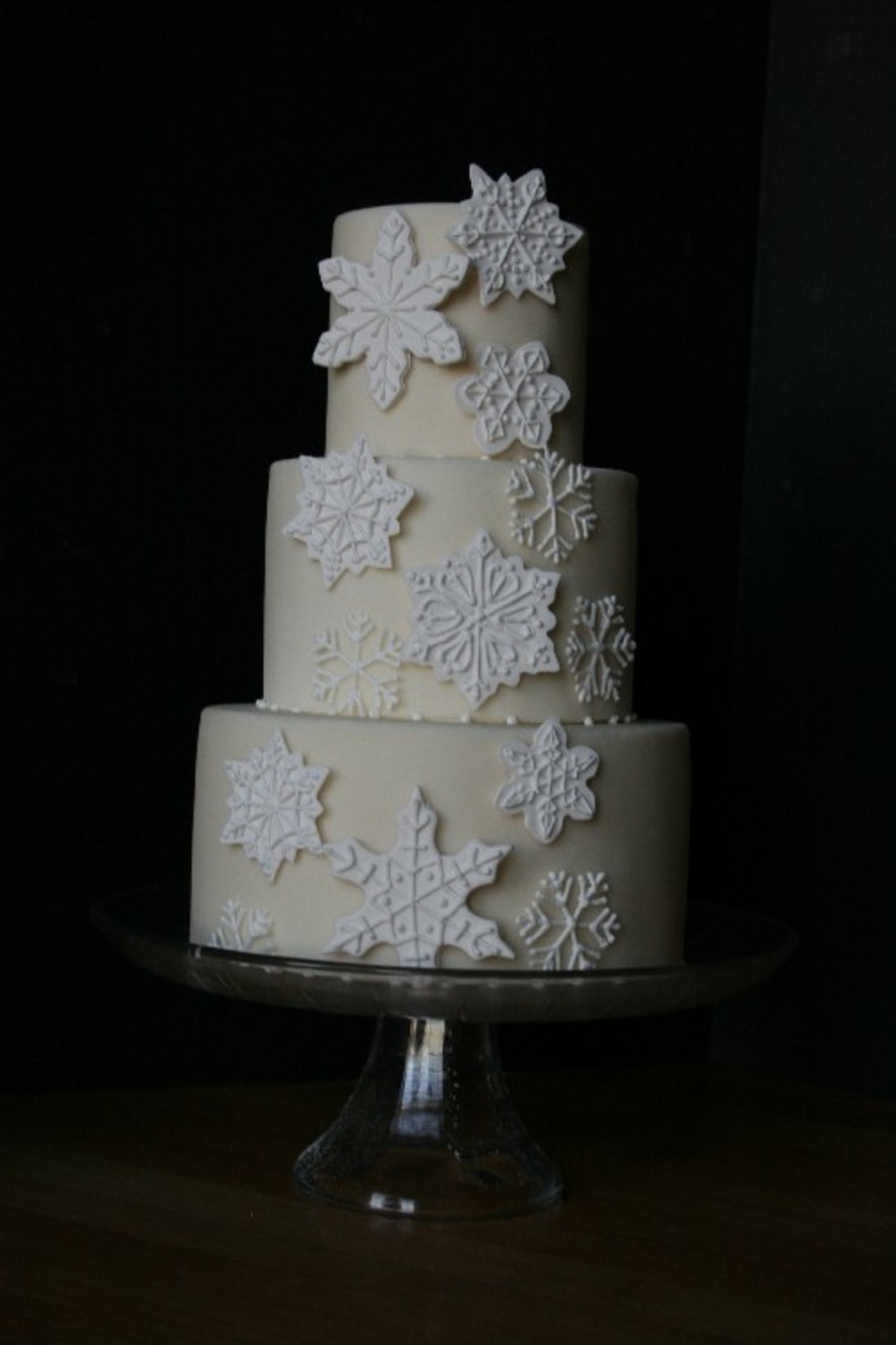 This was a dummy cake that I made to display at an auction to benefit my daughter's school. The snowflakes are gumpaste with royal icing details. The cutters/embossing sheets were from autumn carpenter. The fondant was Michelle Foster's recipe. And wow, dummy cakes are way more difficult to cover than I had anticipated!
