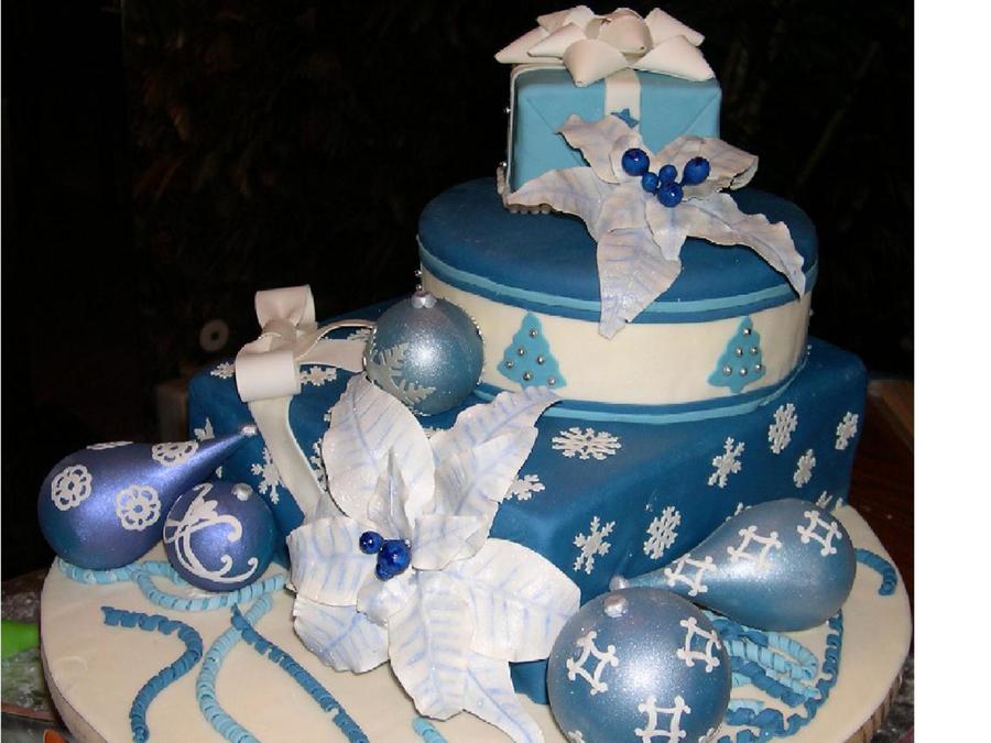 Chocolate ornaments and gum paste poinsettia's and bows. This was a FUN FUN cake to make for a charity event to benefit our local volunteer fire department.