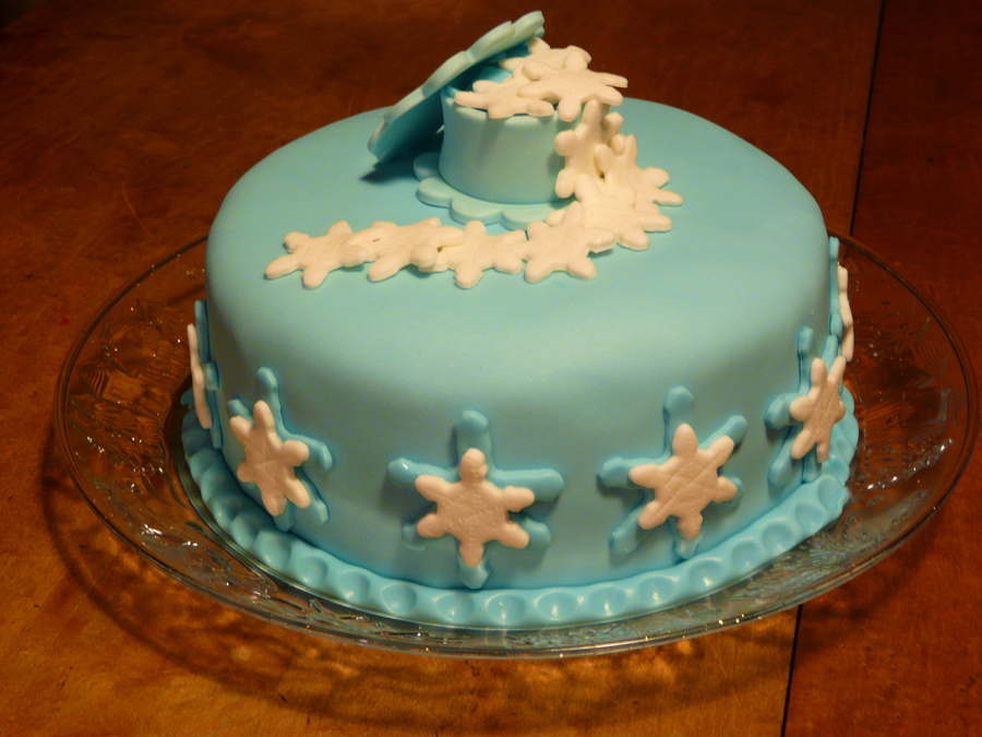 Did this cake for my final Cake in Wilton fondant and gumpaste course. Darn good chocolate cake recipe with chocolate pudding filling. Most of the decorations made out of gumpaste except for the blue snowflakes on the side.