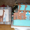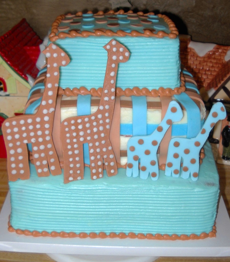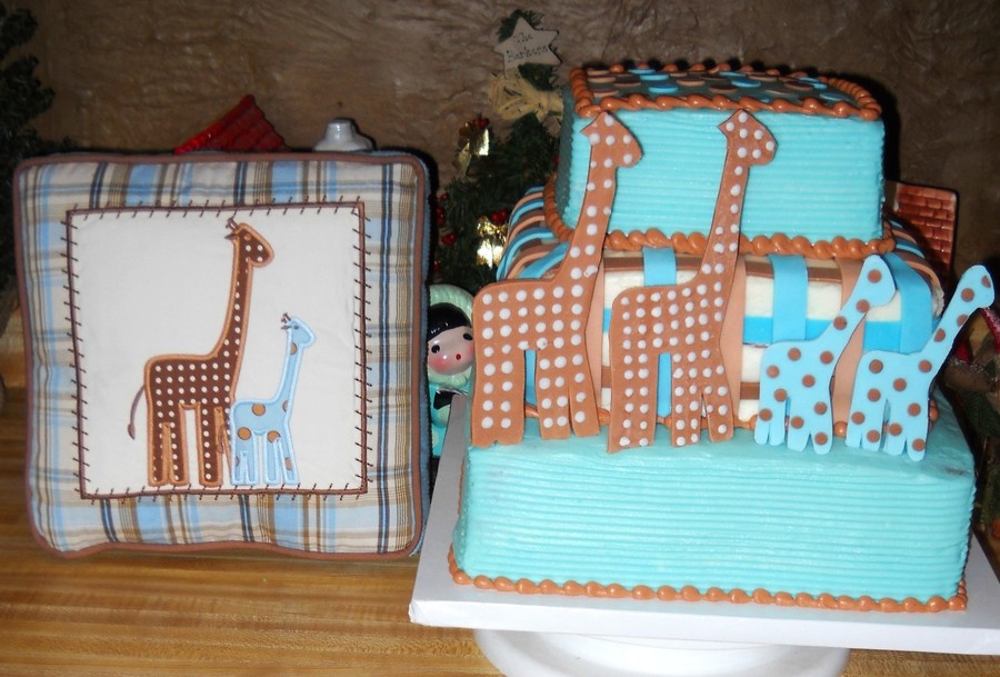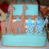 6/8/10 tiered red velvet/white/carrot with cream cheese frosting made to match the baby bedding. It was for a couples shower so I made the mom & dad giraffe and two baby giraffes as they are having twin boys. Plaid fondant middle layer. I wanted to add more details to the gumpaste giraffes but ran out of time =(