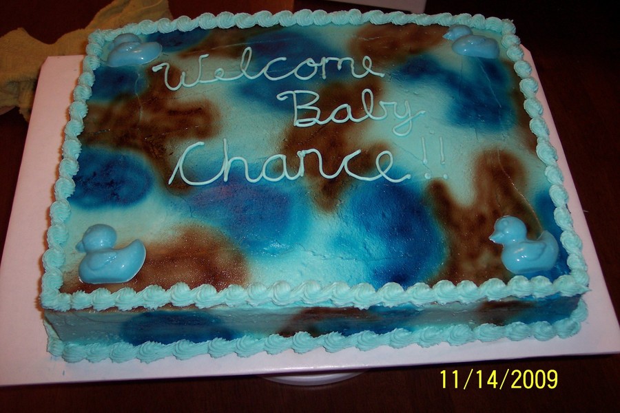 This is what it looked like finished. I put blue ducks on it because all they wanted was just the welcome baby chance. I think I should have used a darker color blue to write in but other than that I was happy with it and so were they.