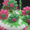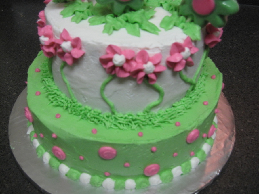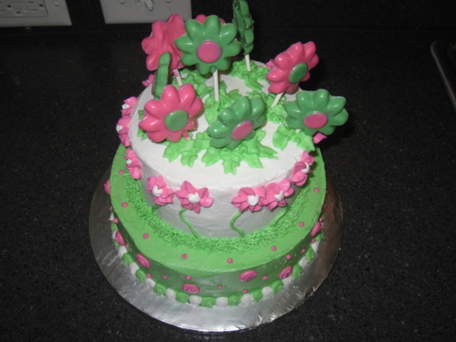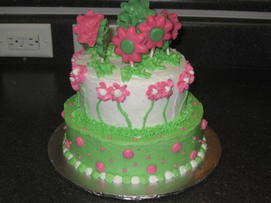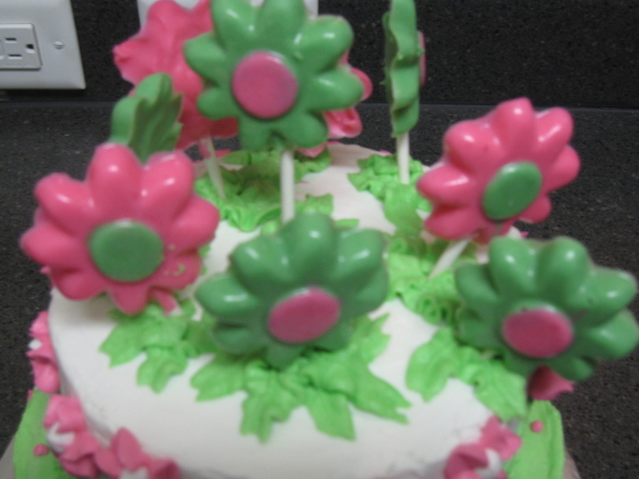 I made this cake for my friend's daughter's 9th bday party. the flowers on top are made of white chocolate